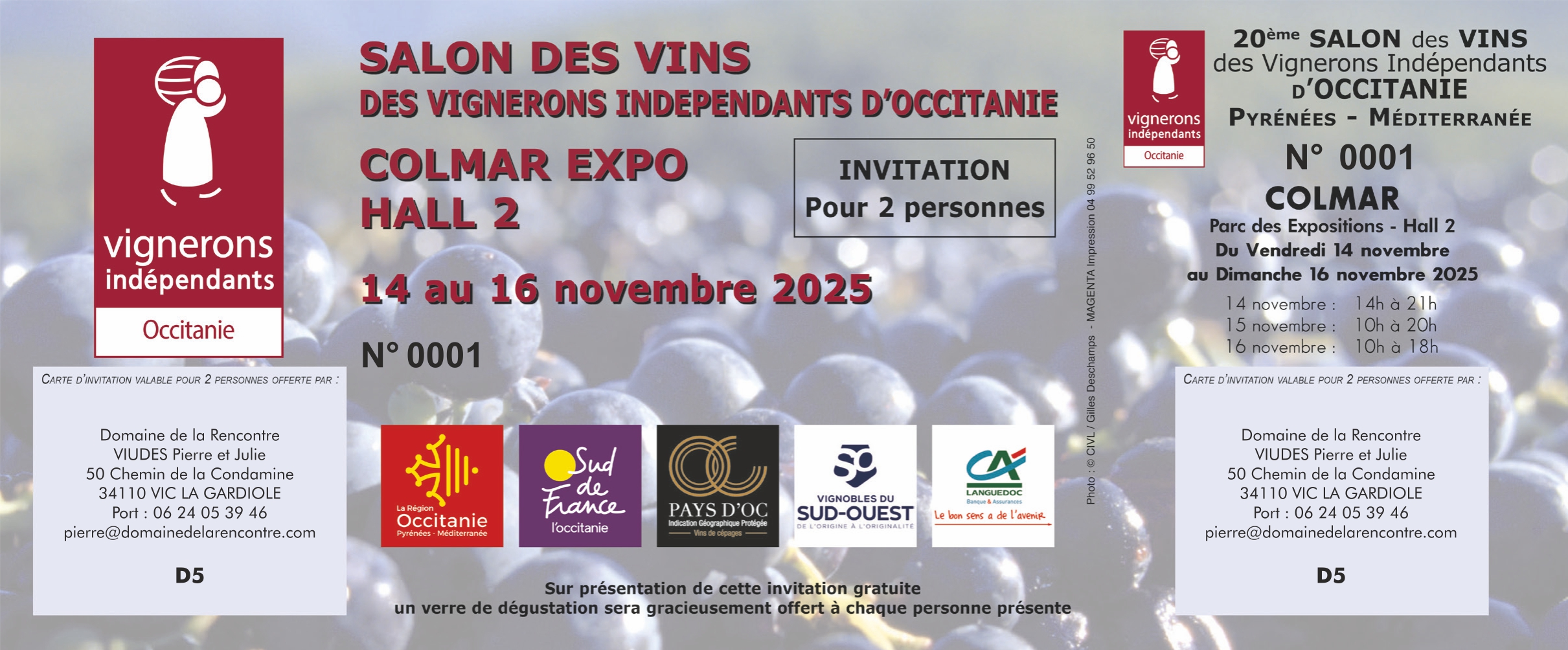 En plus, les salons nationaux de Vignerons Indépendants limitent l’inscription par internet à une seule fois par personne par salon. Les autres vignerons n’ont pas vous oublié mais leurs invitations sont bloqué une fois que vous avez reçu la première.